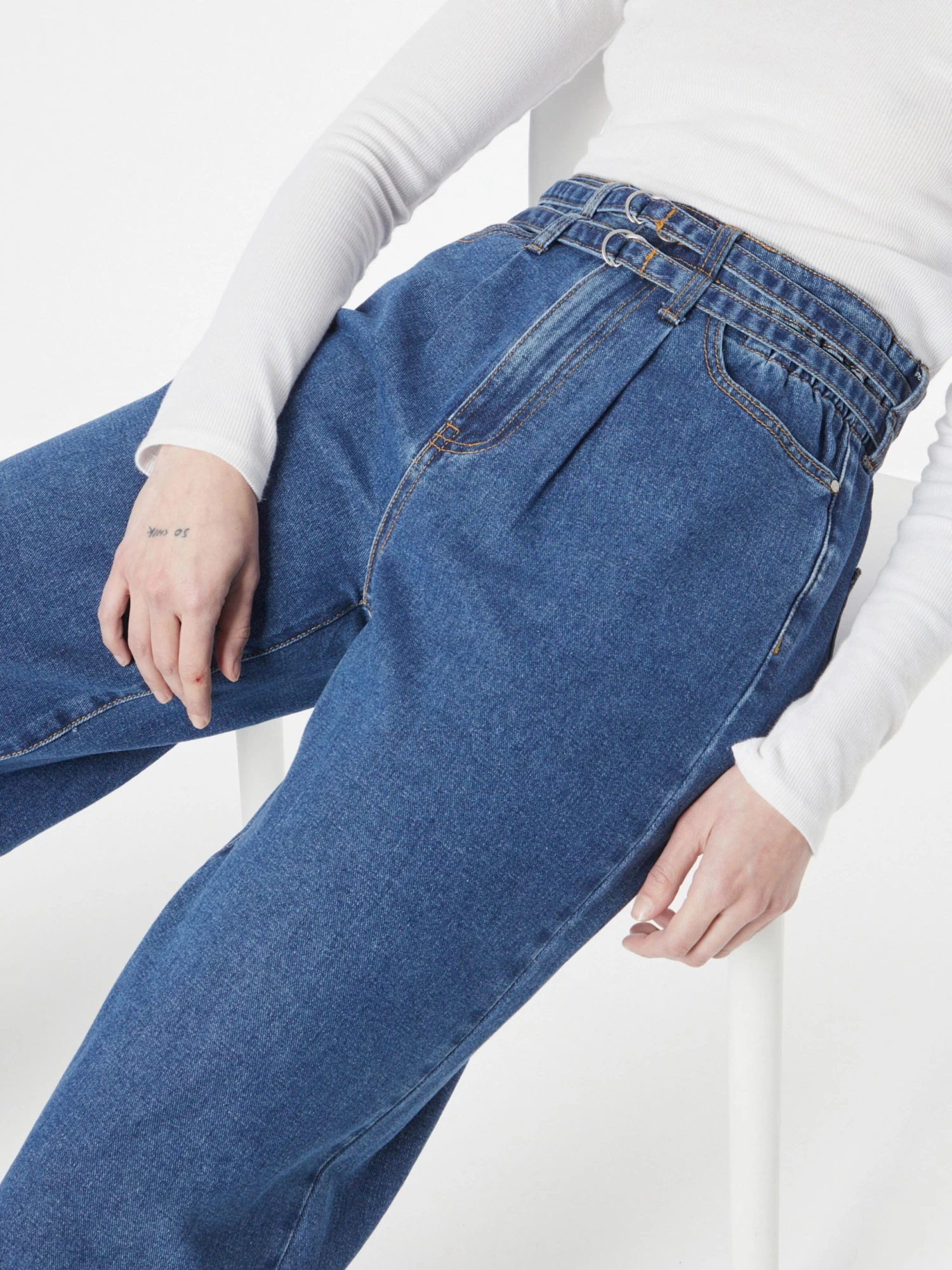 Jeans Wide Leg Bandplooi Jeans SPACE Dames Blauw