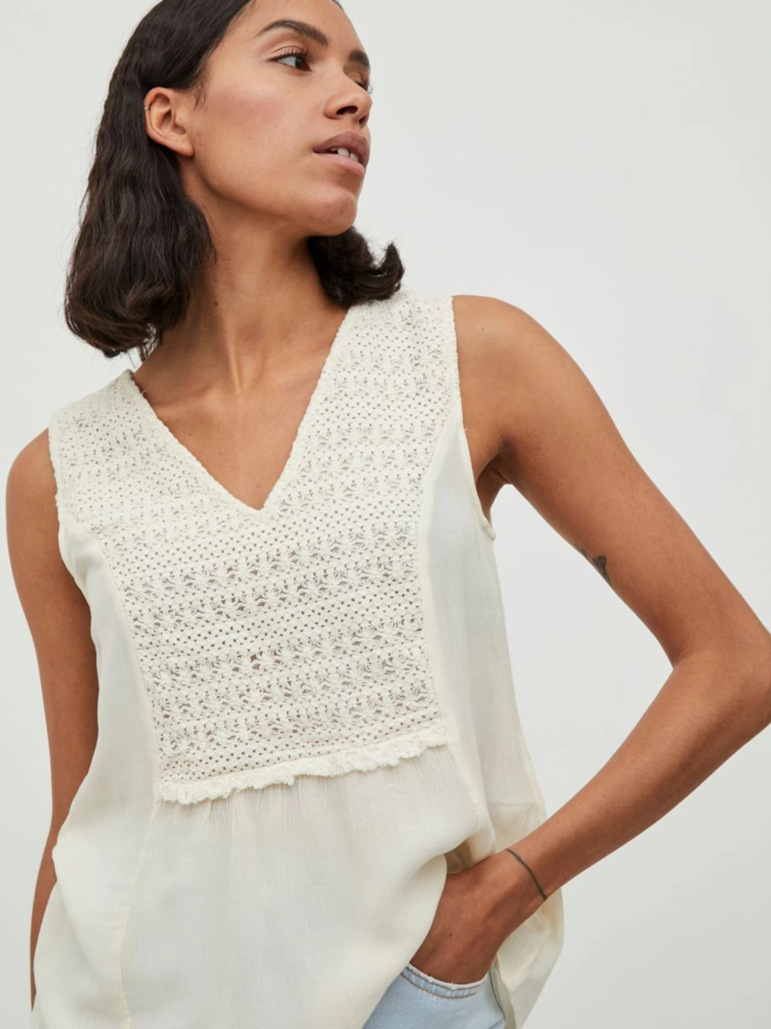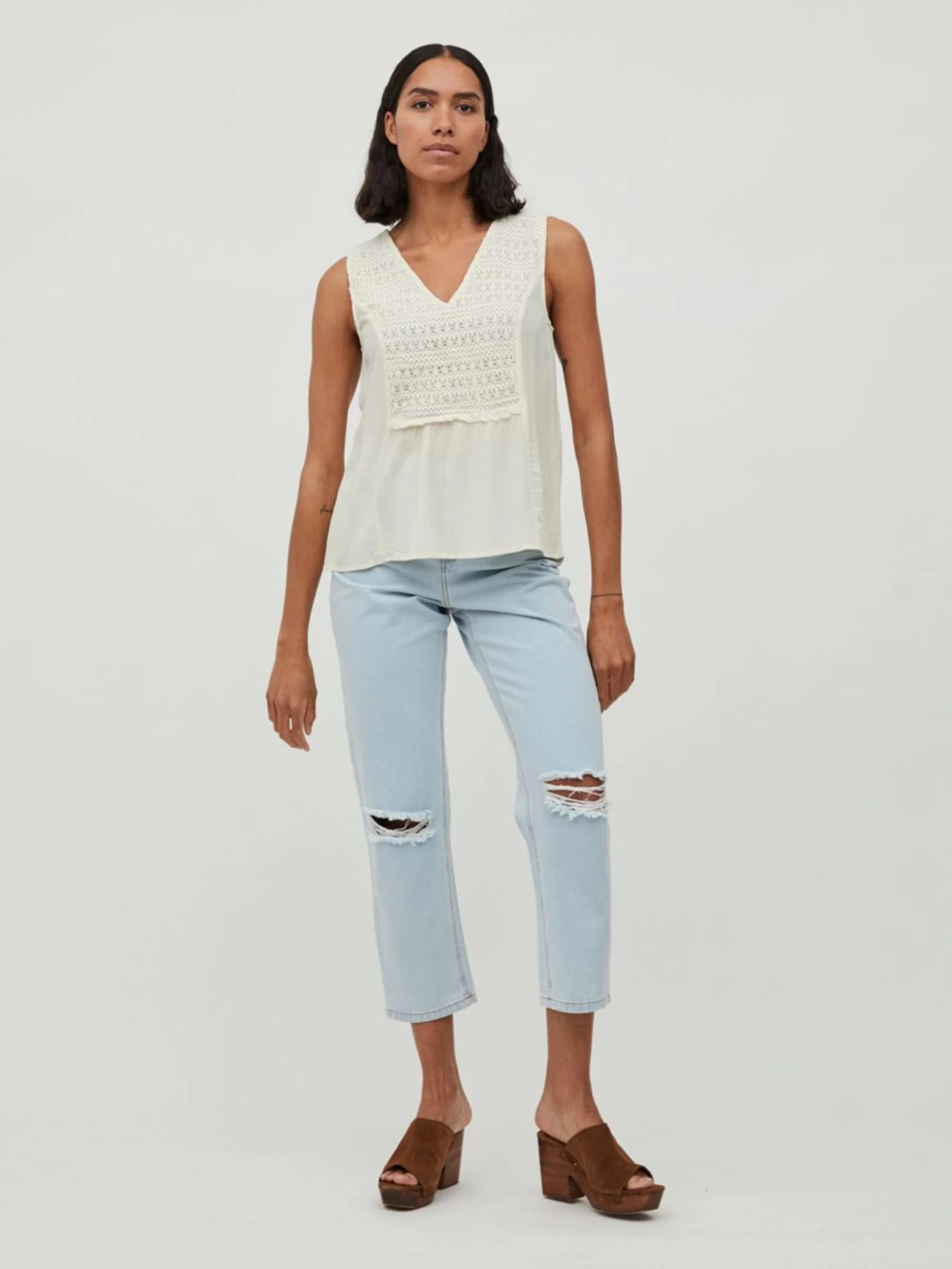 Vila Mouwloze Shirts Top Dames Ecru