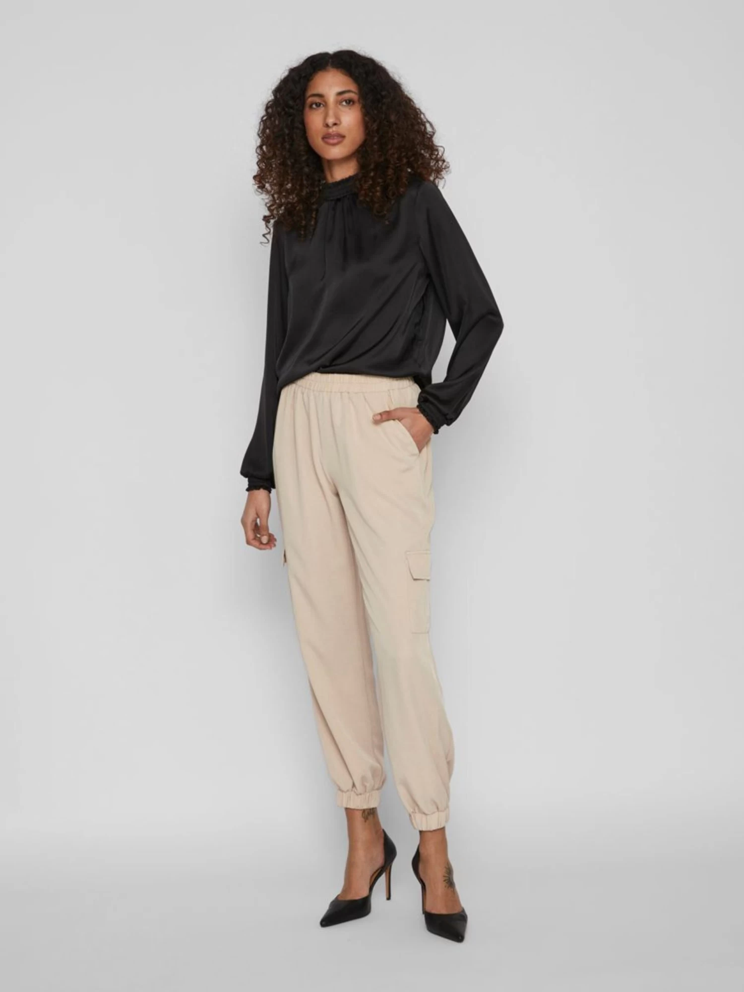 Vila Sweatpants Tapered Cargobroek PETRA Dames Beige
